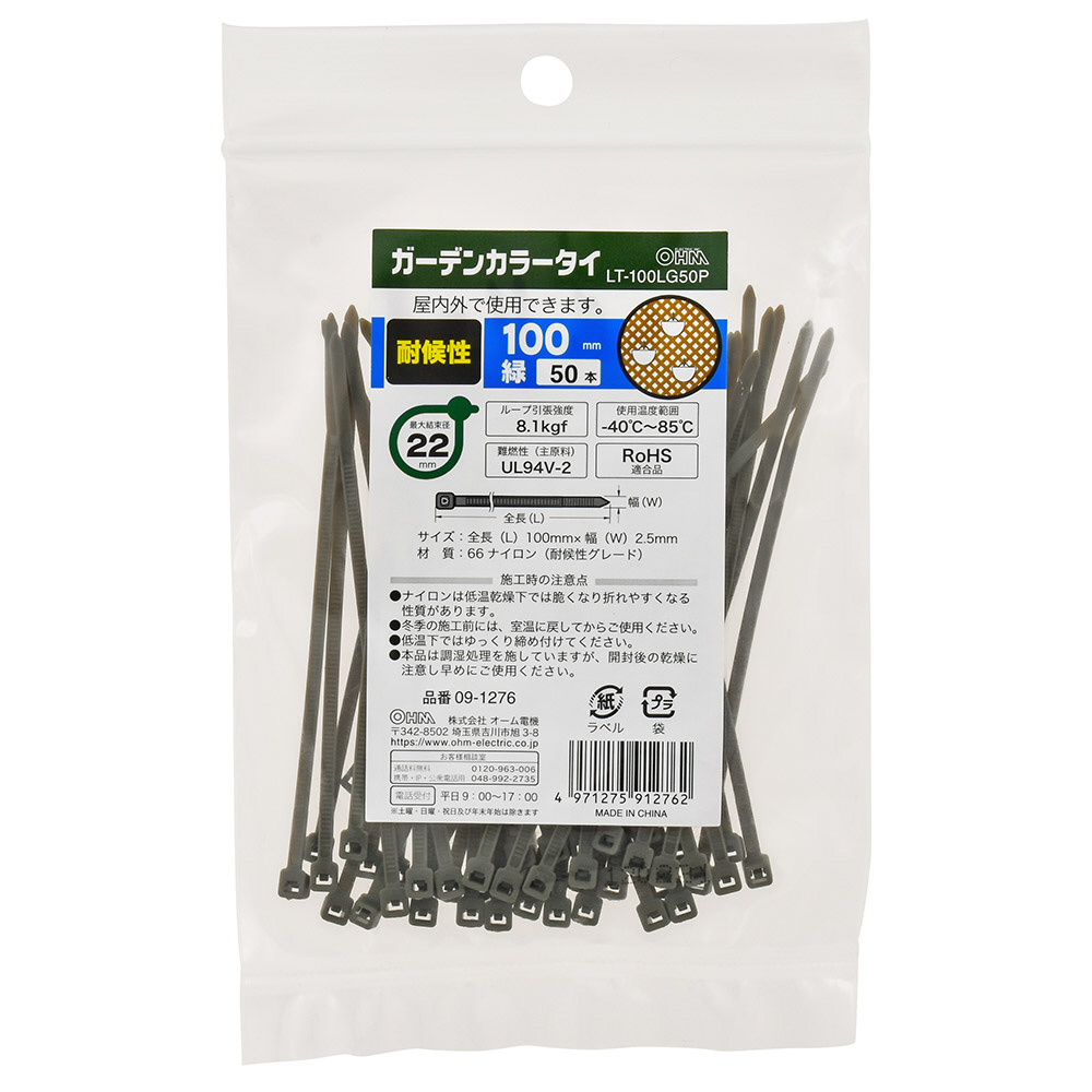 ガーデンカラータイ耐候性100mm50本入緑 LT-100LG50P