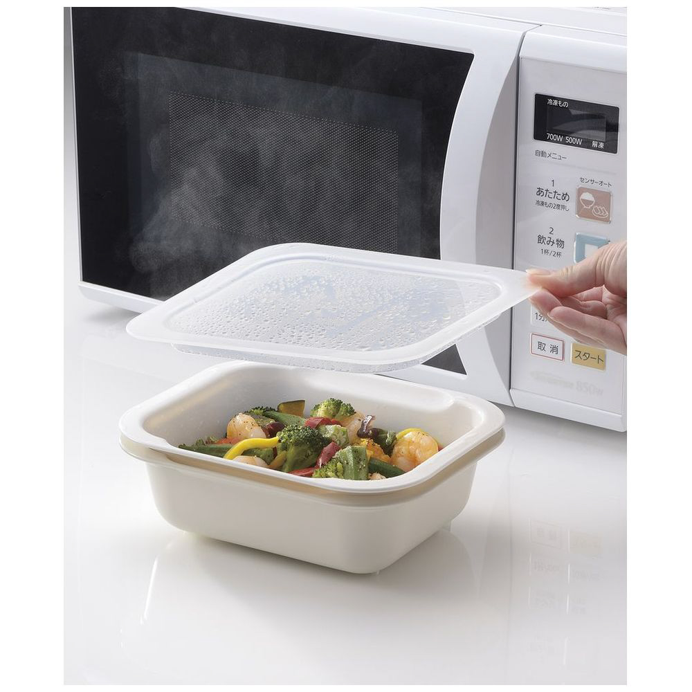 ■フタ付なので冷蔵庫での保管やレンジでの簡単な蒸し料理も出来ます。