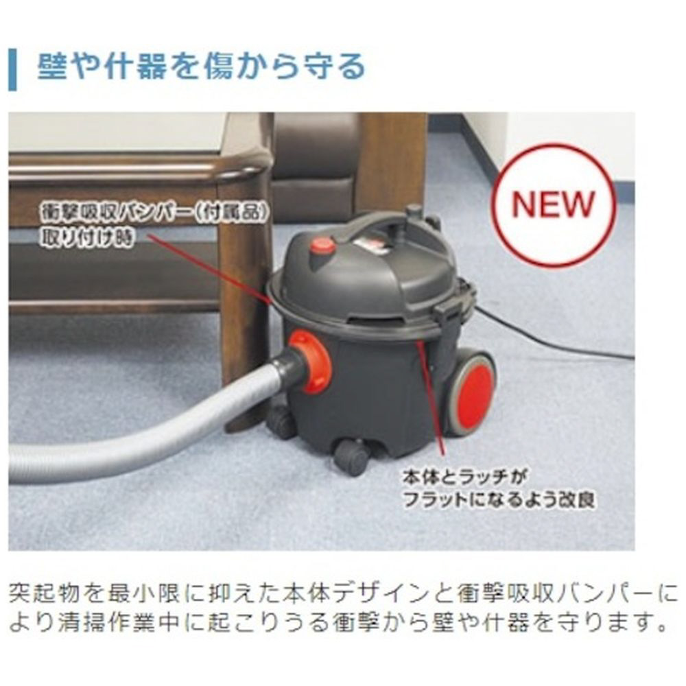 ■突起物最小限に抑えた本体デザインと衝撃吸収バンパーにより、清掃作業中に起こりうる衝撃から対象物を守ります。