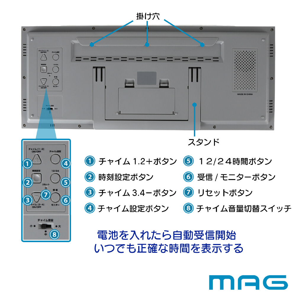 仕様3 プログラムチャイム:最大設定数4回/1日(ウエストミンスターチャイム)