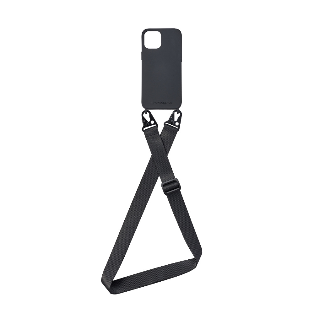 iPhone 2022 6.7 2眼 バンドネックストラップ付きシリコンケース ブラック PHONECKLACE PN23897i14MBK