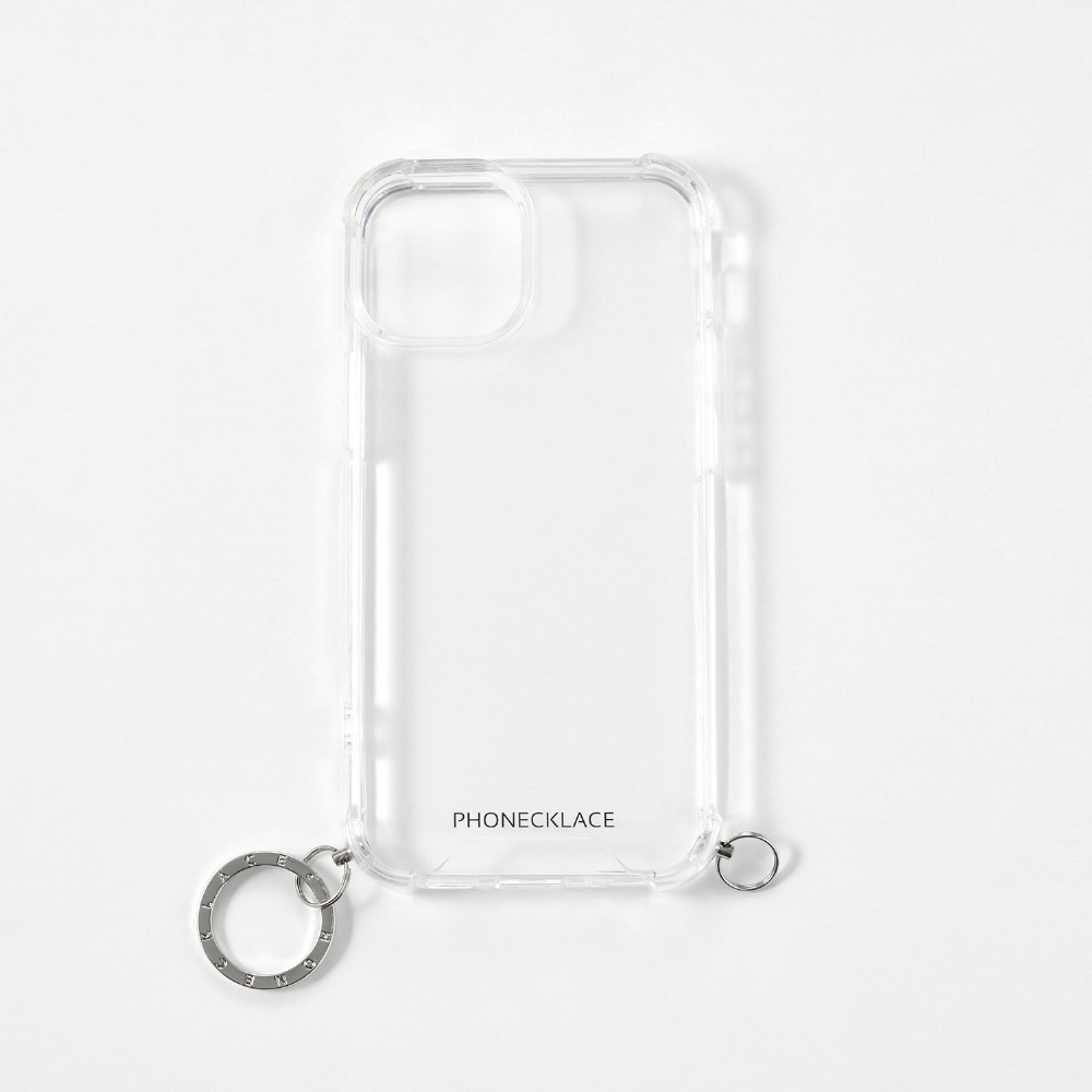 iPhone 2022 6.7 2眼 ストラップ用リング付きクリアケース シルバーチャーム PHONECKLACE PN23894i14MSV