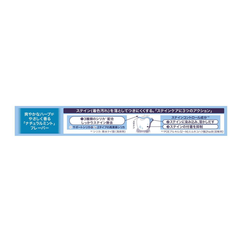 ●大きいサイズのサポートシリカ(清掃剤: 無水ケイ酸)と、小さいサイズの2タイプの高清掃シリカ(清掃剤: 無水ケイ酸)で、しっかりステインを除去する「トリプルクレンズ処方」を採用しています。