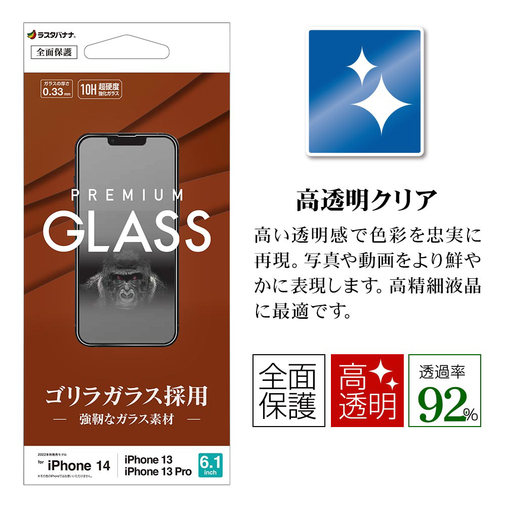 iPhone2022秋 6.1 2眼モデル/iPhone13/13 Pro ガラスフィルム ゴリラガラス 高光沢 クリア GG3496IP261