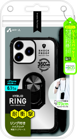 iPhone2022 6.1inch 3眼 耐衝撃背面クリアケース スマホリング付 ブラック ACP22PTRBK