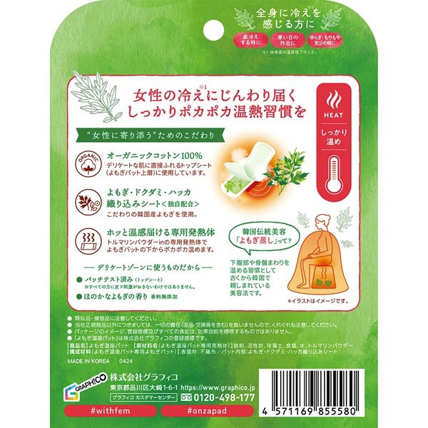 with FEM(ウィズフェム)よもぎ温座パット オーガニック (HEAT)しっかり温め 3回分