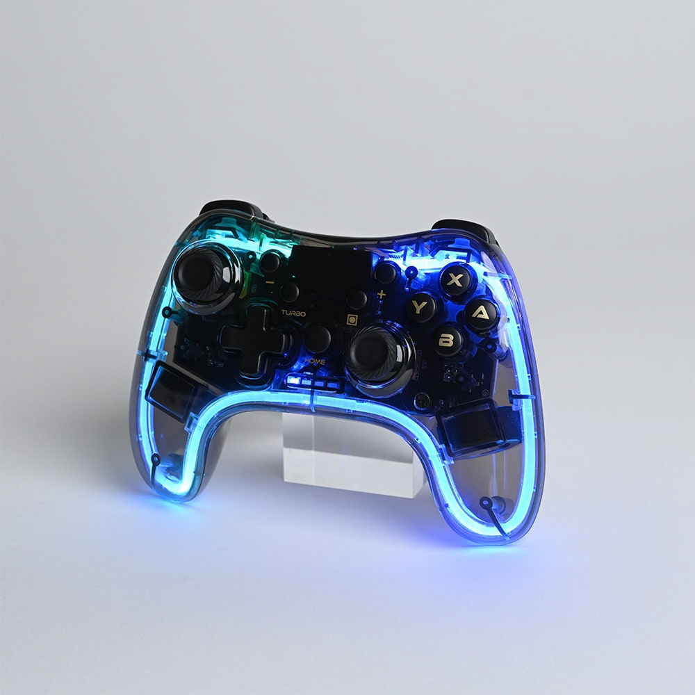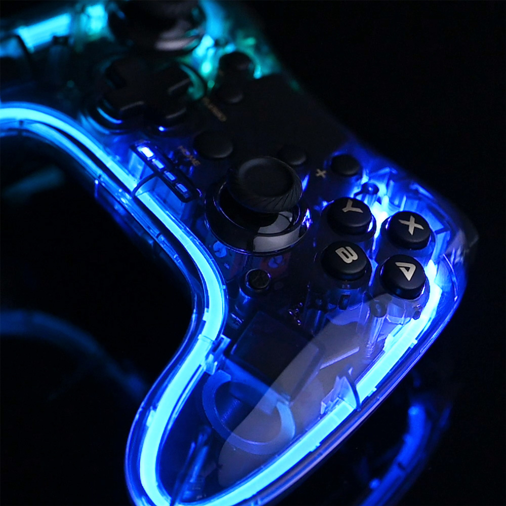 クリアボディの内部が鮮やかに光る! ジャイロ&連射対応のワイヤレスコントローラー!