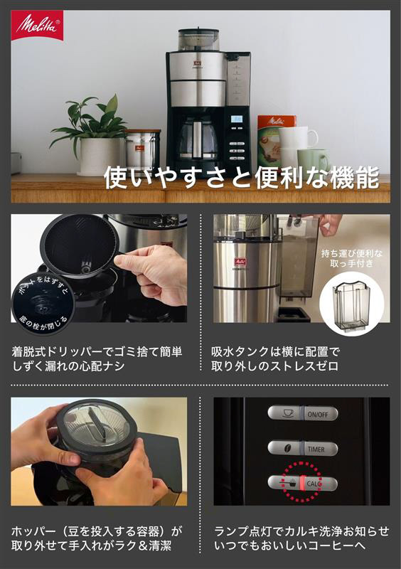 業務用で採用されているコニカル式ミル刃を使用し、一度に6杯まで抽出可能です。