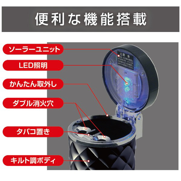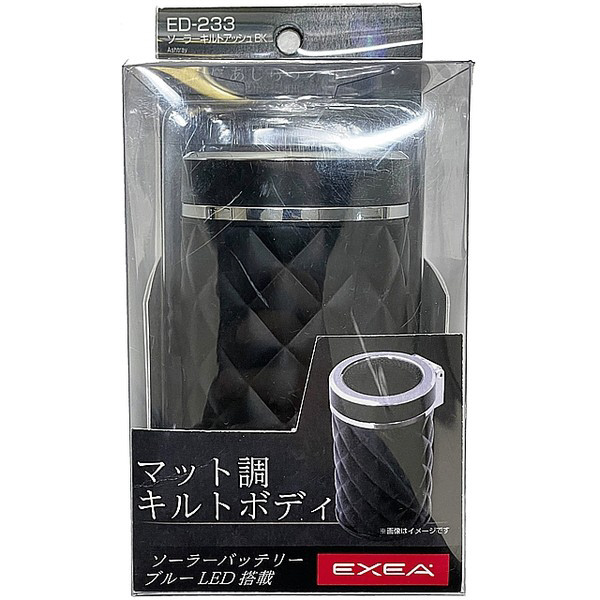 車内用品 EXEA(エクセア) 灰皿 ソーラーキルトアッシュ ブラック ドリンクホルダー型 LED付き マットブラック ED233
