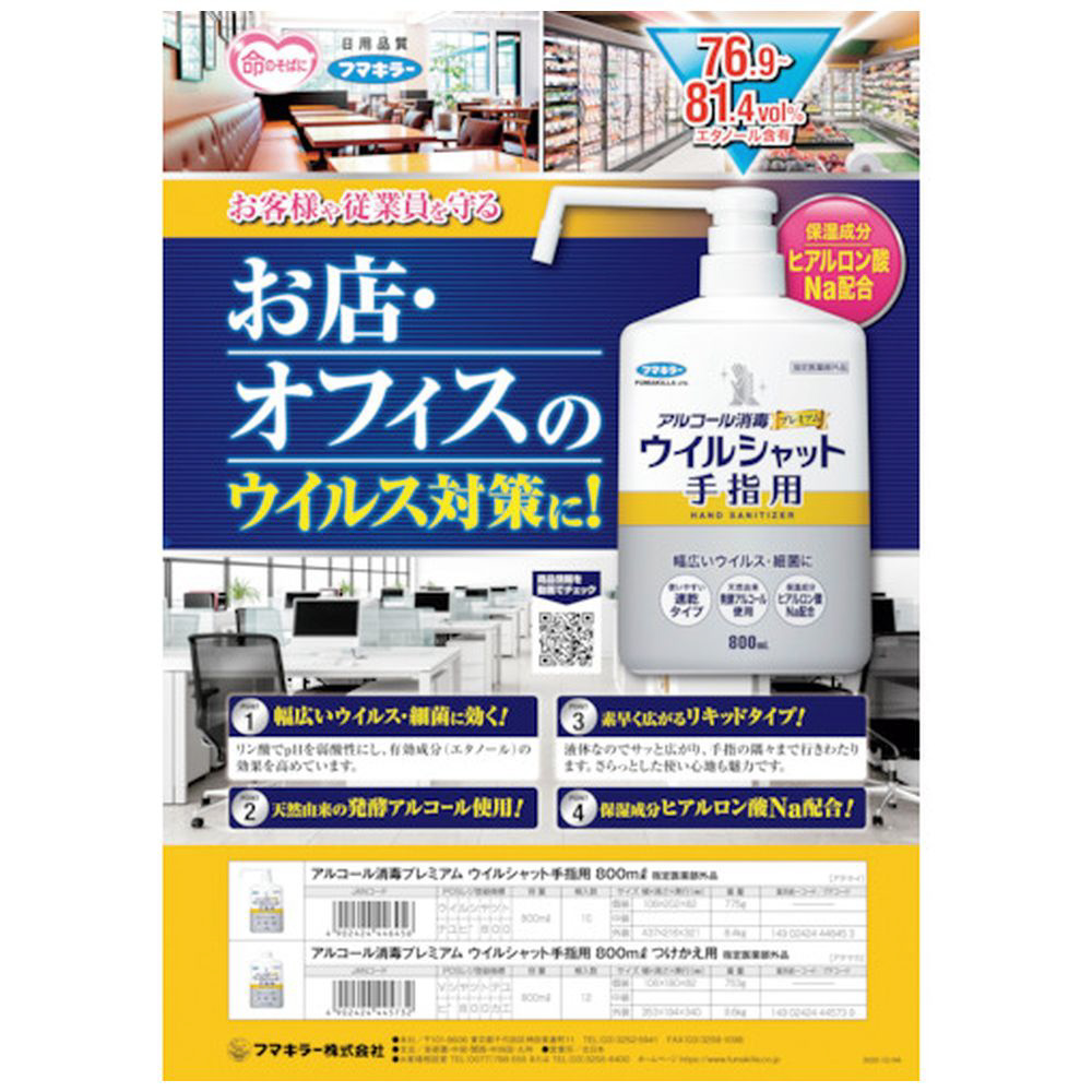 ・品名: アルコール消毒プレミアムウイルシャット手指用800mlつけかえ用