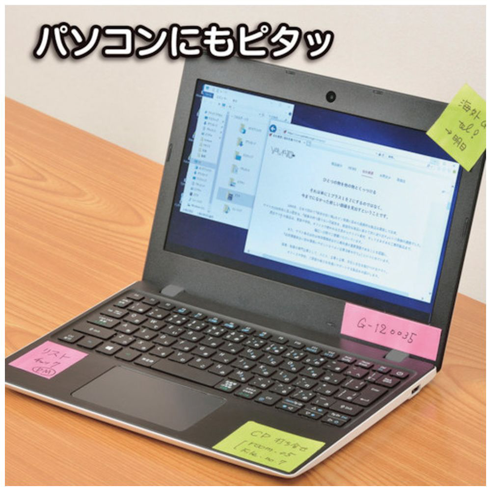 ■紙以外の素材にも貼れる強粘着タイプです(粗面は貼れません)。