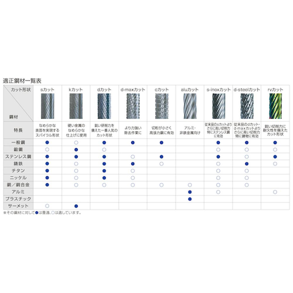 【特長】●切削からバリ取りまで、各種金属加工に幅広くご使用いただけます。●攻めのカット形状と独自コーティング加工で、大幅な切削力の向上と持続を実現します。●今までにない鋭い切削力で、作業時間の大幅短縮が可能です。●独自のコーティング加工により、刃欠けしにくく耐久性が大幅にアップしました。●製品寿命の向上を目的とした特別設計です。