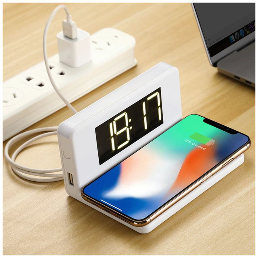 ワイヤレス充電/USB出力/目覚まし時計/ナイトライト、1台で4役もこなすチャージャークロック。