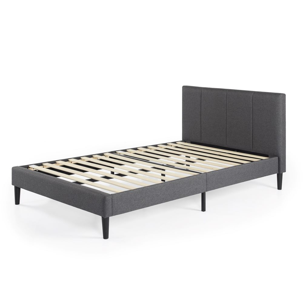 ◆布張りベッドフレーム【Madden Upholstered Platform】シリーズ・ダークグレー。頑丈なメタルフレームを、すのこと布張りフレームで、シンプルなデザインに仕上げました。シングルサイズになります。