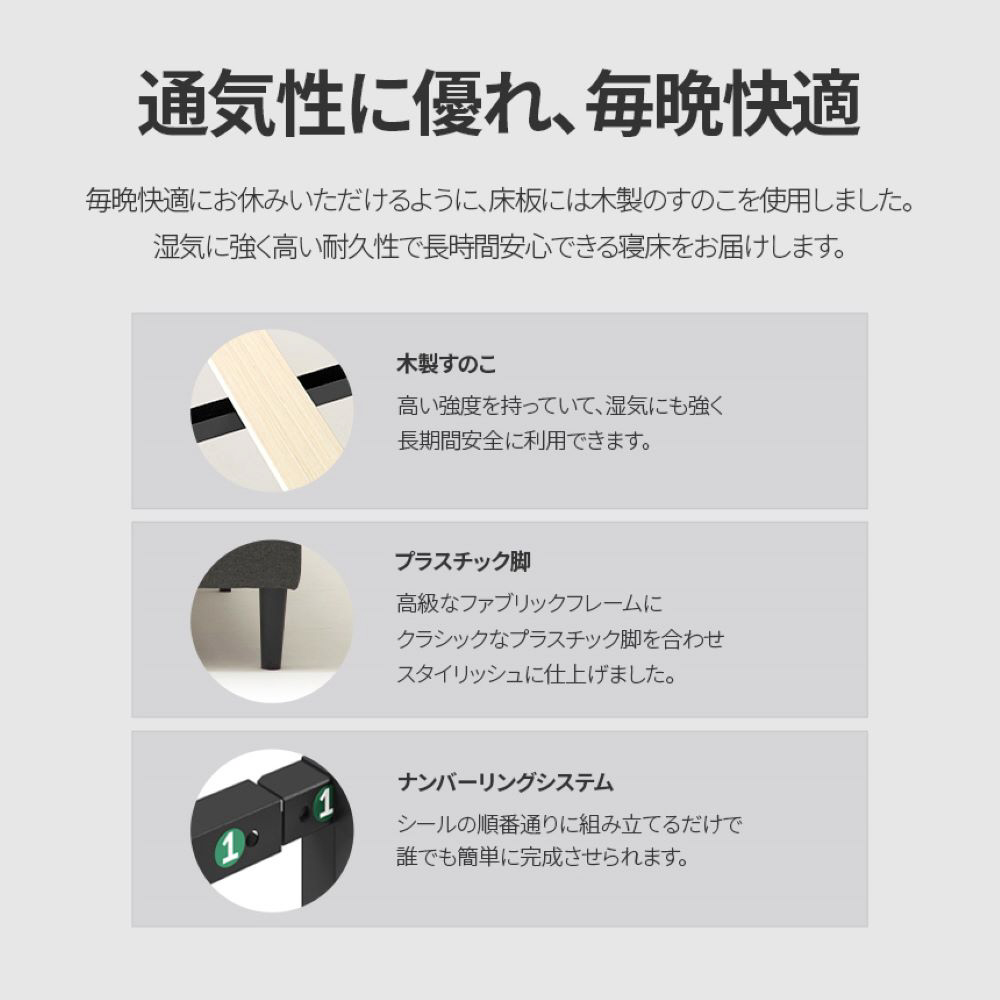 【フレームのみ】ファブリックベッド ジヌス Maddon[スノコ床板/レッグ] ダークグレー ZJ-FPPVGR-12S [シングルサイズ]