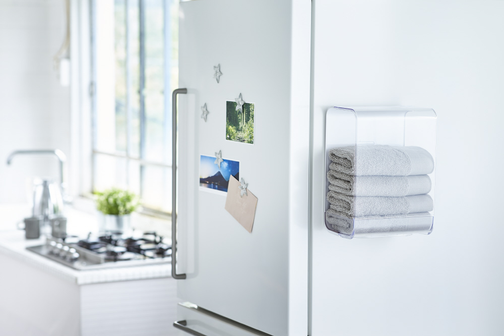 ・冷蔵庫や洗濯機などの側面に取り付ければタオルがサッと取り出せます。