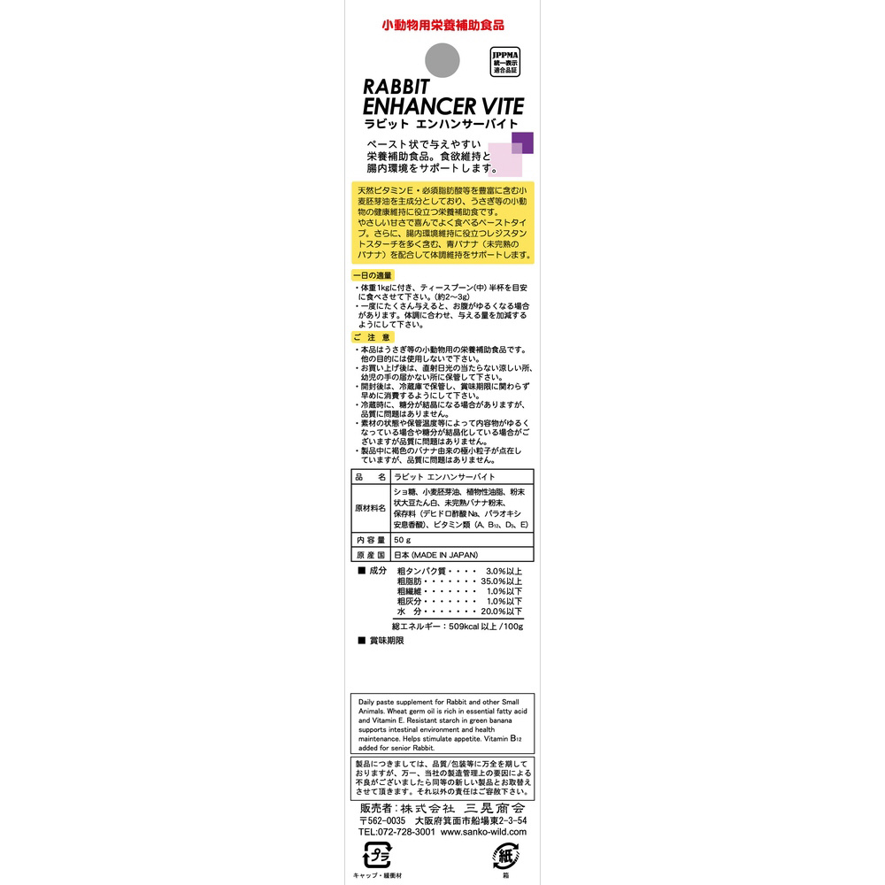 ペースト状で与えやすい栄養補助食品。食欲維持と腸内環境をサポートします。天然ビタミンE・必須脂肪酸等を豊富に含む小麦胚芽油を主成分としており、うさぎ等の小動物の健康維持に役立つ栄養補助食です。やさしい甘さを喜んでよく食べるペーストタイプ。さらに、腸内環境維持に役立つレジスタントスターチを多く含む、青バナナ(未完熟のバナナ)を配合して体調維持をサポートします。