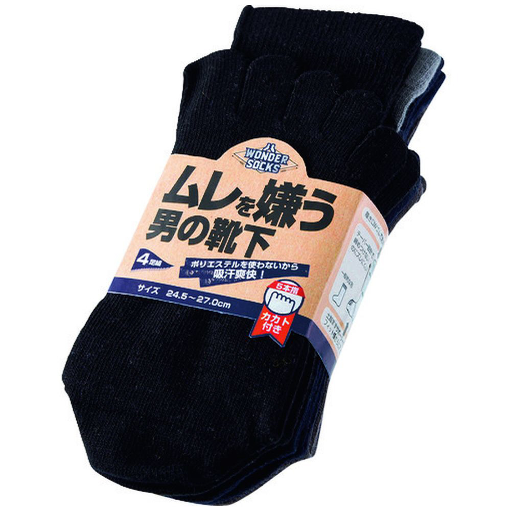 ユニワールド ムレを嫌う男の靴下 5本指カカト付 ブラック 4足組 WS-945
