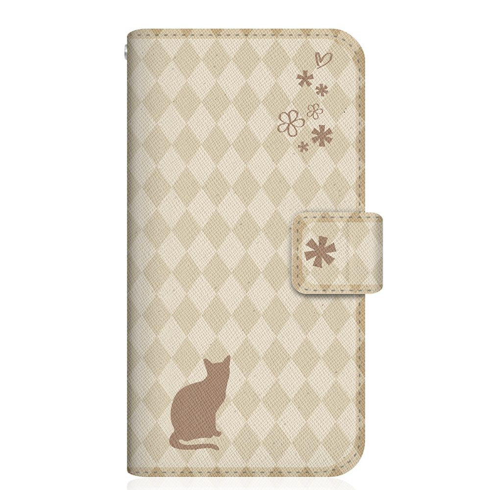 NYAGO G020P スリム手帳型ケース NYAGO ノート フレンチ フラワー ダイアリー キャット シルエット ダイヤ柄 & おすましだにゃん。