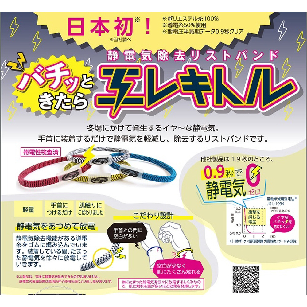 手首に装着するだけで静電気を軽減し、除去するリストバンド。 帯電性検査済。0.9秒で静電気ゼロ。リングを楕円形にすることにより、肌に触れる面積を多くしより優れた効果を発揮します。