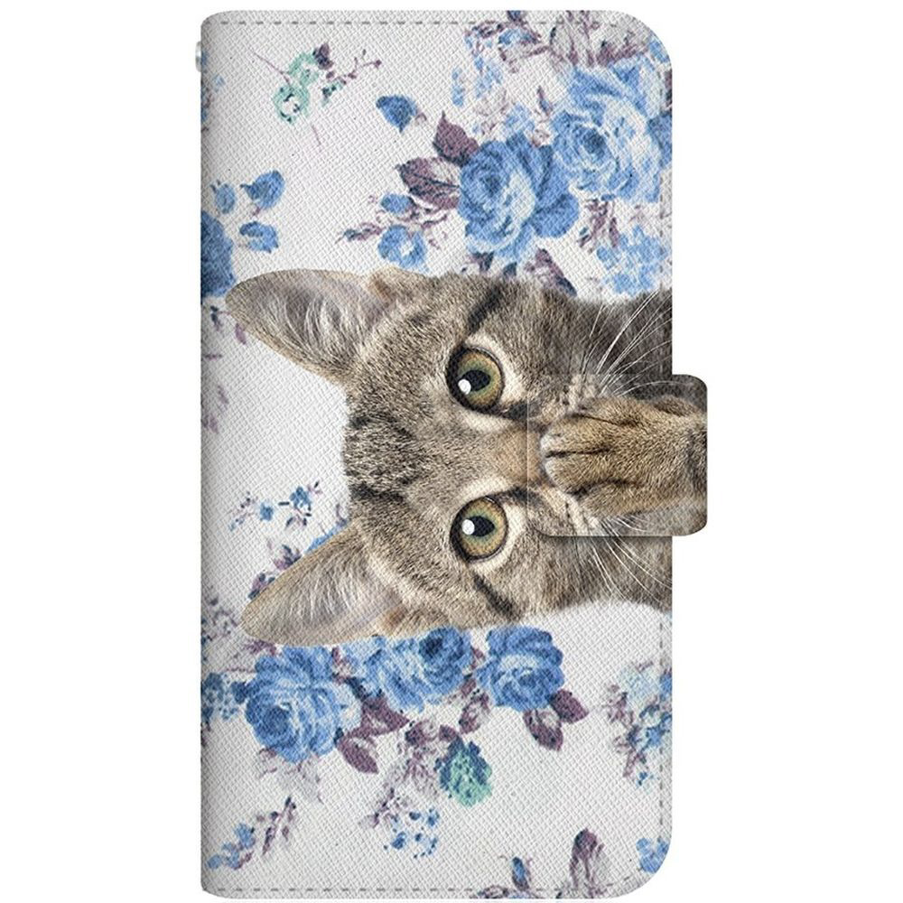 NYAGO SCV46 スリム手帳型ケース NYAGO ノート キュート 肉球をペロペロするにゃ〜。 サマー フラワー だにゃ〜。