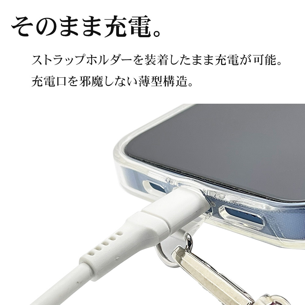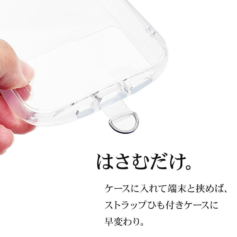 ストラップホールがないスマートフォンにも簡単にストラップを付けられます。