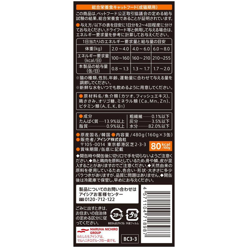 黒缶3P ささみ入りかつお 480g(160g×3缶)