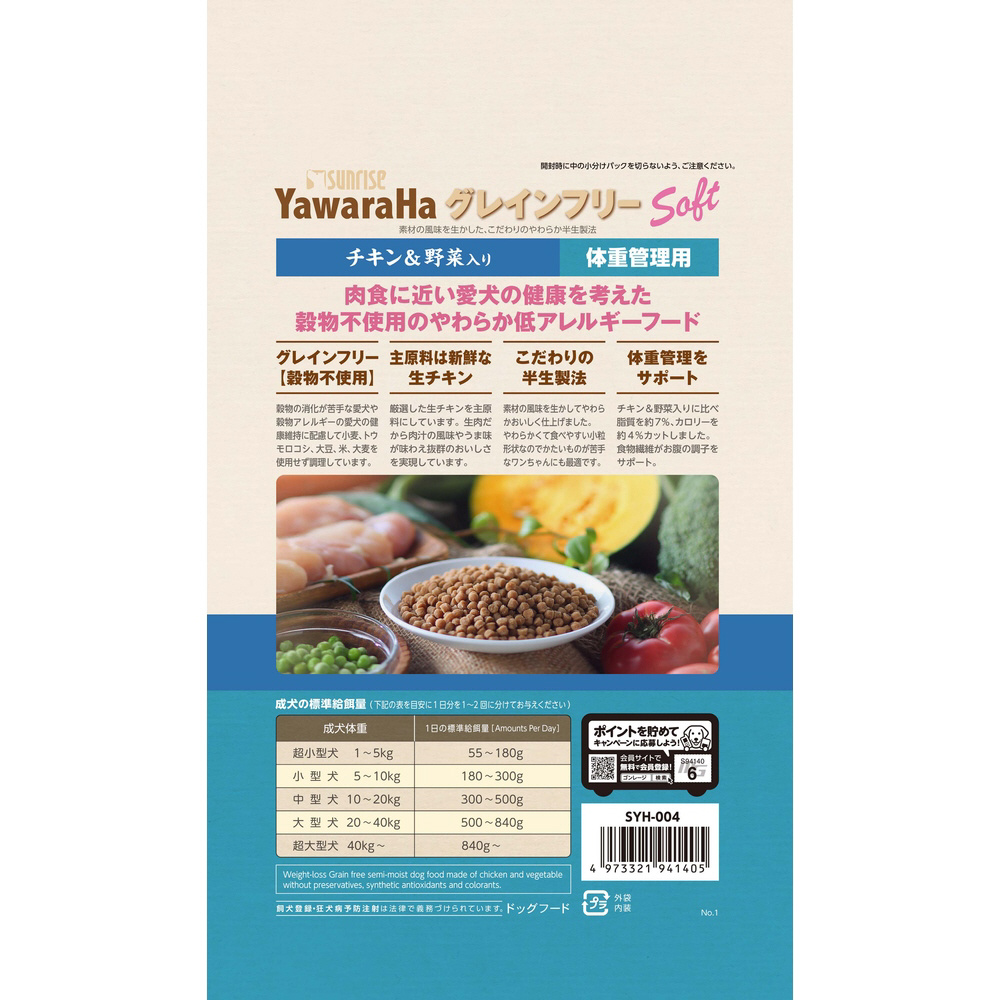 YawaraHa(ヤワラハ)グレインフリーソフト チキン&野菜入り 体重管理用 600g