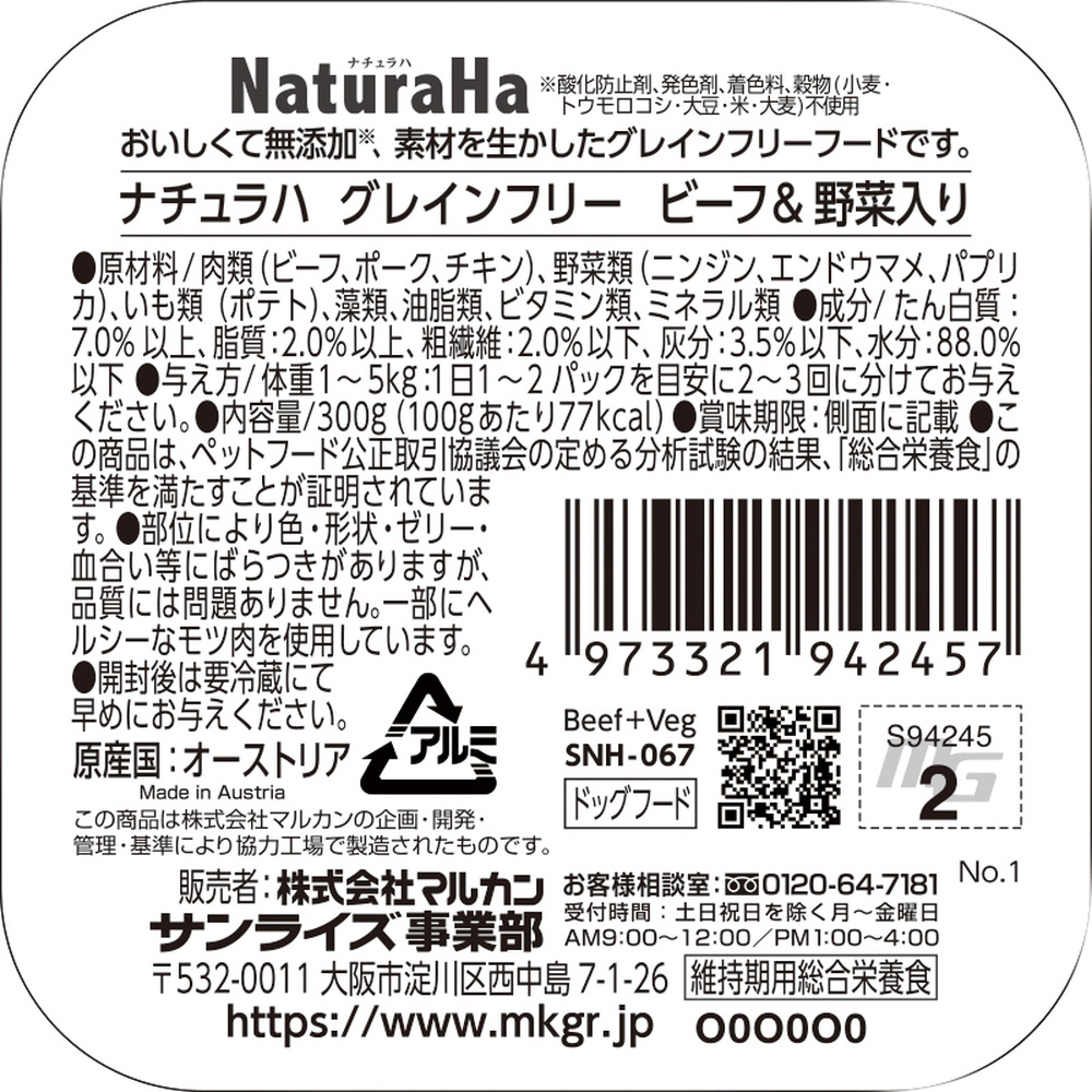 NaturaHa(ナチュラハ)グレインフリー ビーフ&野菜入り 300g