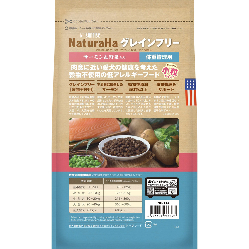 NaturaHa(ナチュラハ)グレインフリー サーモン&野菜入り 体重管理用 小粒 700g