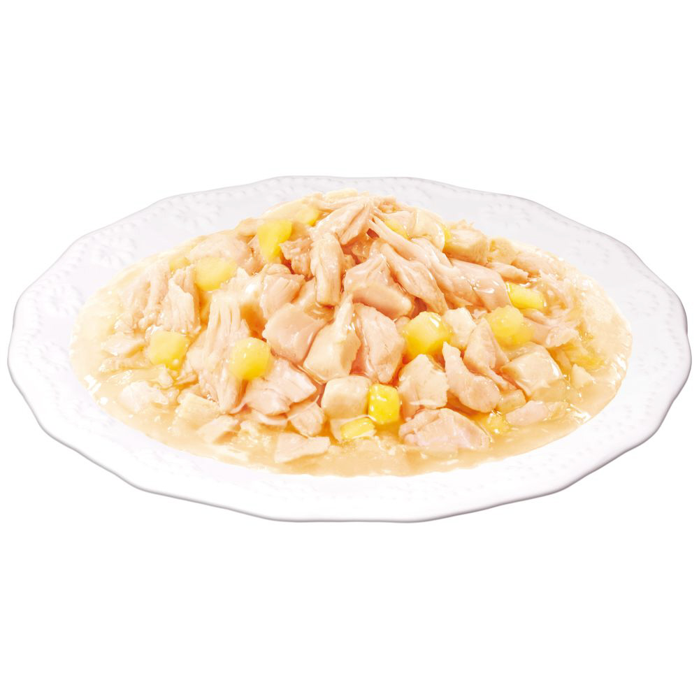 ・低脂肪なささみをふっくら蒸して低カロリー*に仕上げました。(*シーザーパウチ成犬 ビーフ&彩り野菜入り比19%減)・厳選されたささみにさつまいもを加えて、丁寧な調理で素材のおいしさをそのまま閉じ込めました。一般食