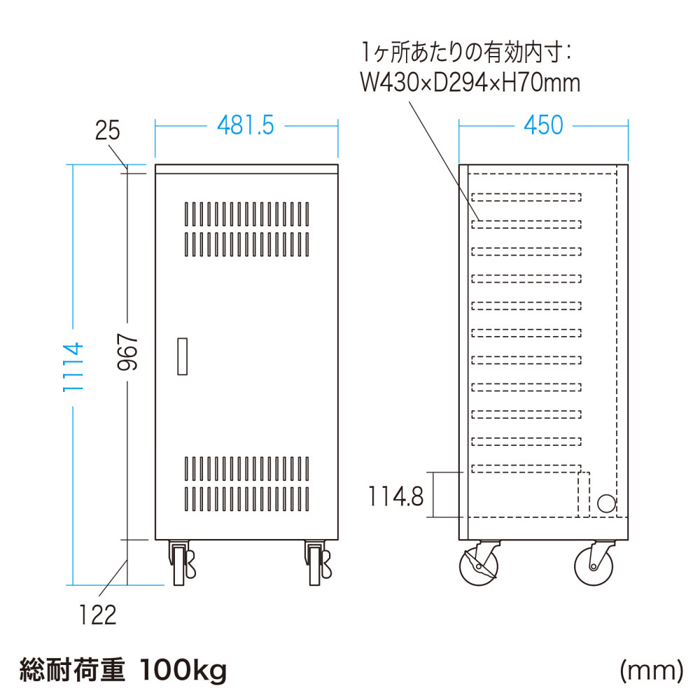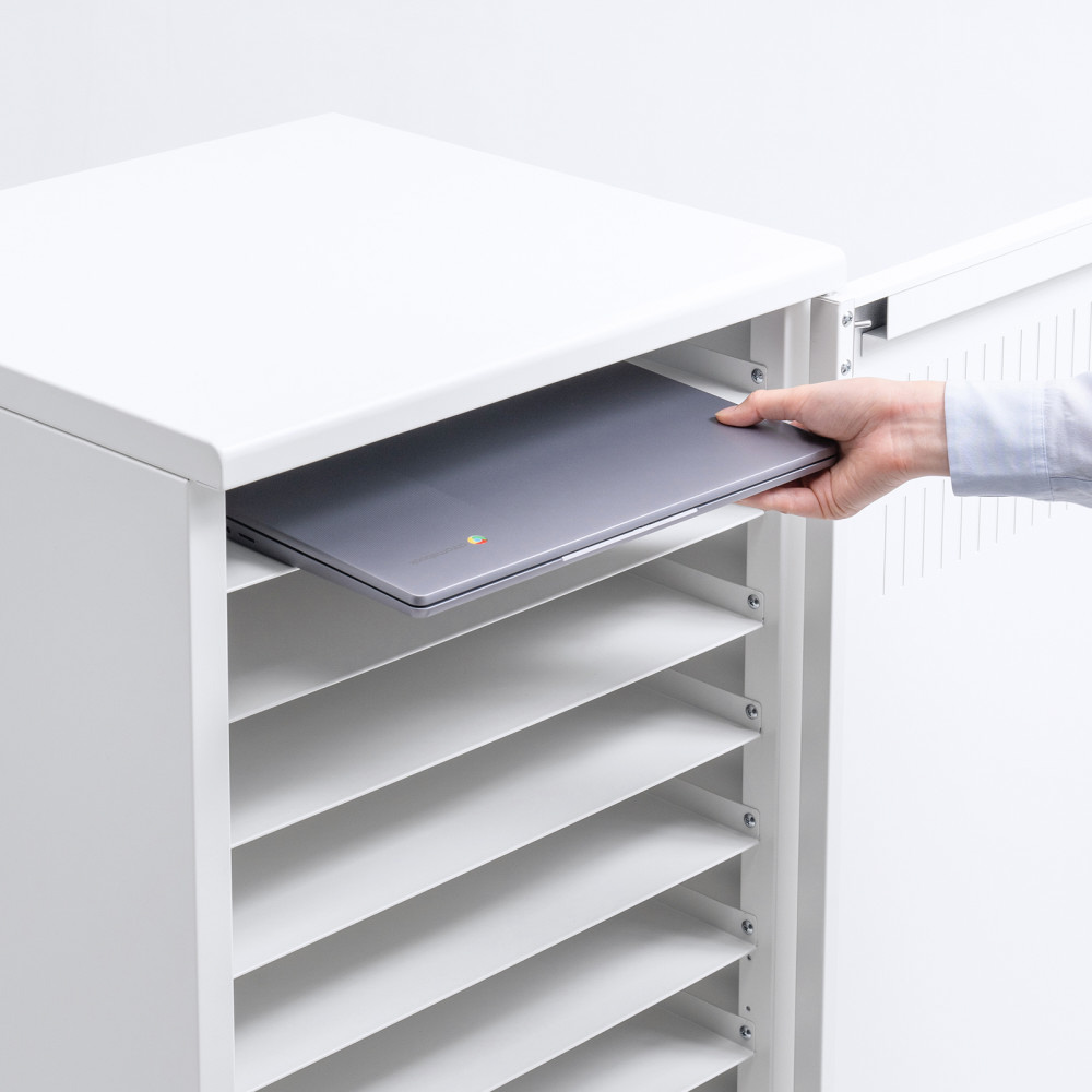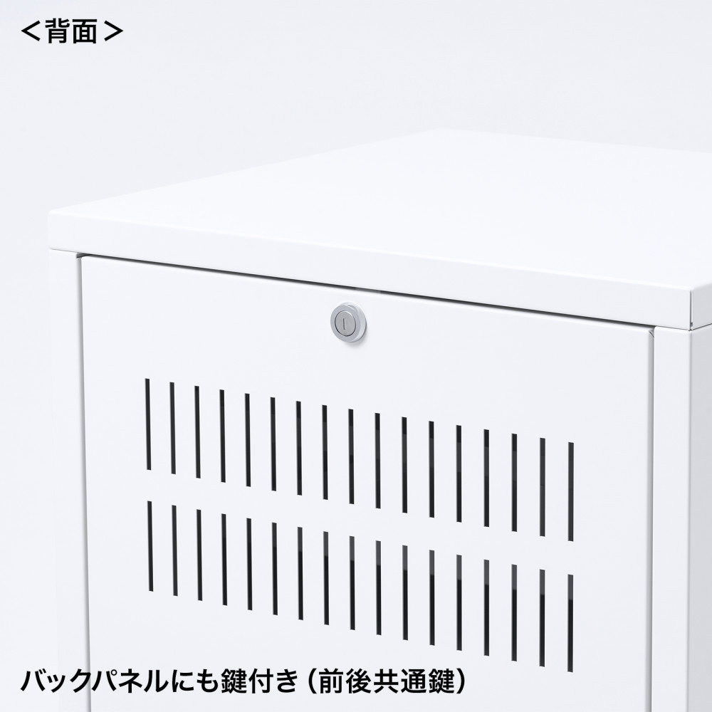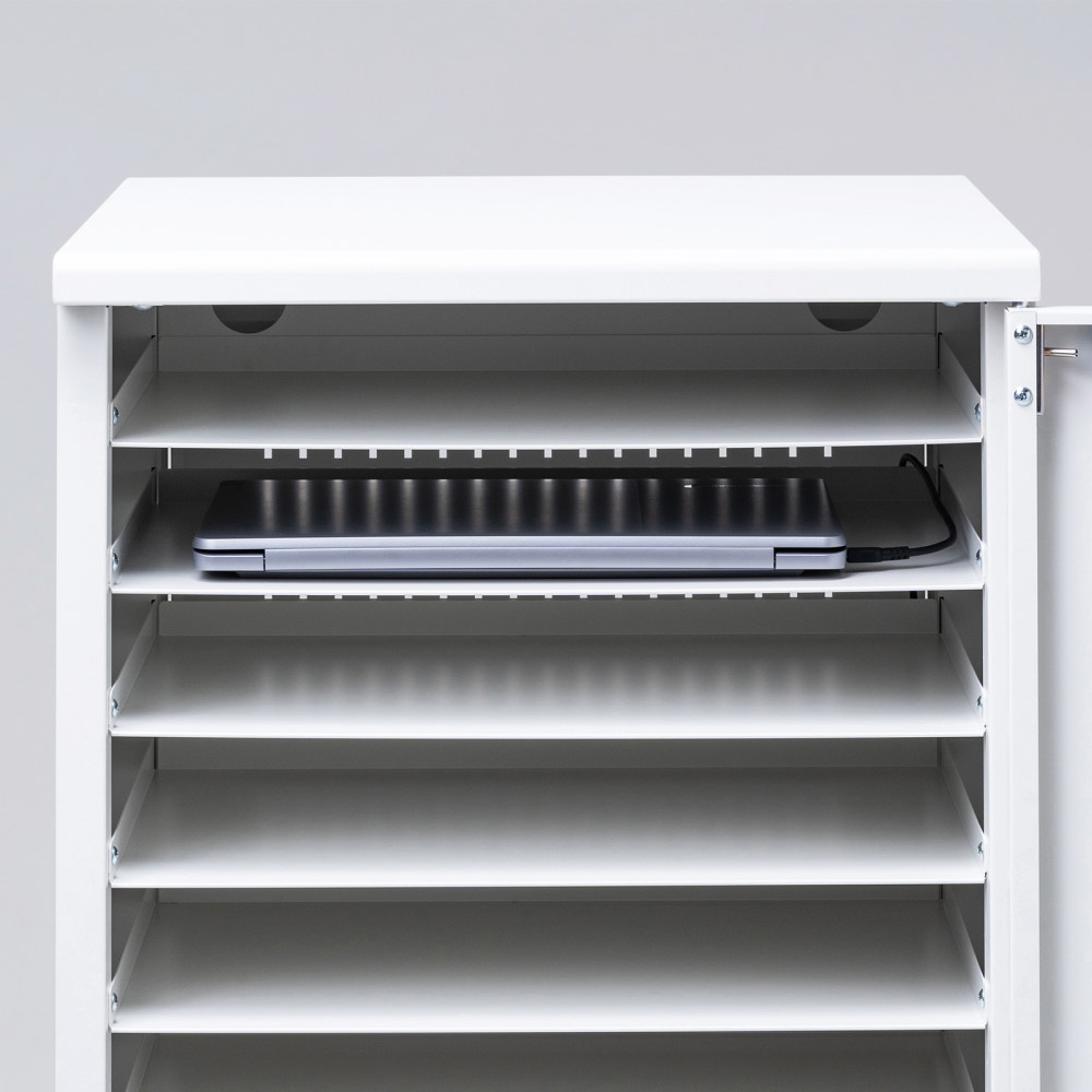 ●17インチ程度までノートパソコン11台を一括収納できる、省スペースタイプの保管庫です。