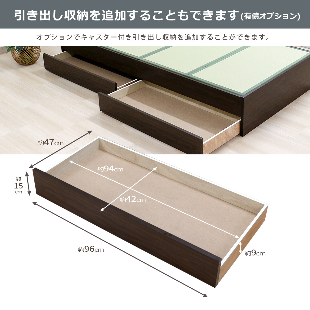 薄型畳付きヘッドレス畳ベッド(オープン・ロー)専用引出し2個セットです
