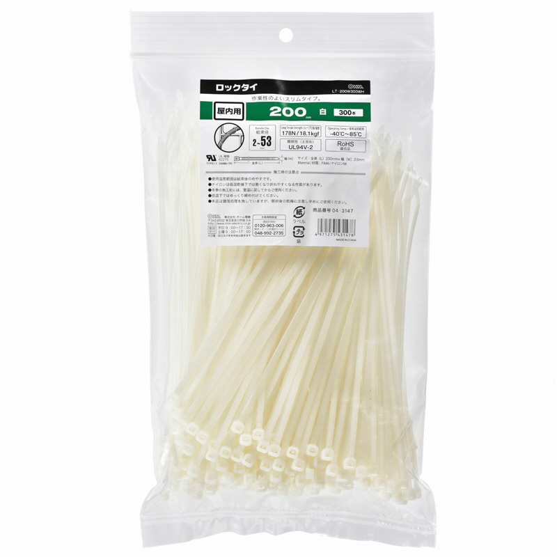 ロックタイ 屋内用 200mm 300本入 白 LT-200W300WH