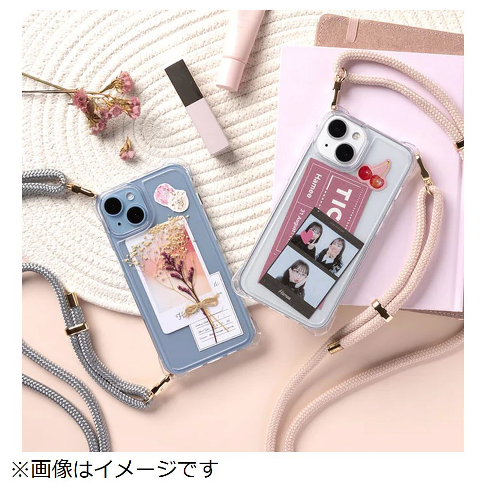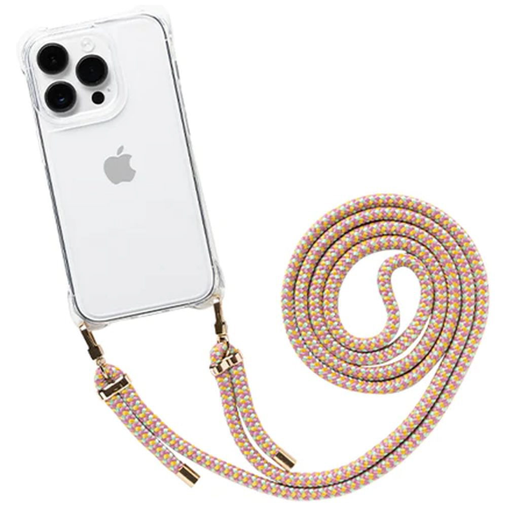[iPhone 14 Pro専用]ULTRA FINE 4つ角ストラップホール付クリアケース ショルダーストラップ付き コットンキャンディピンク 661-053163