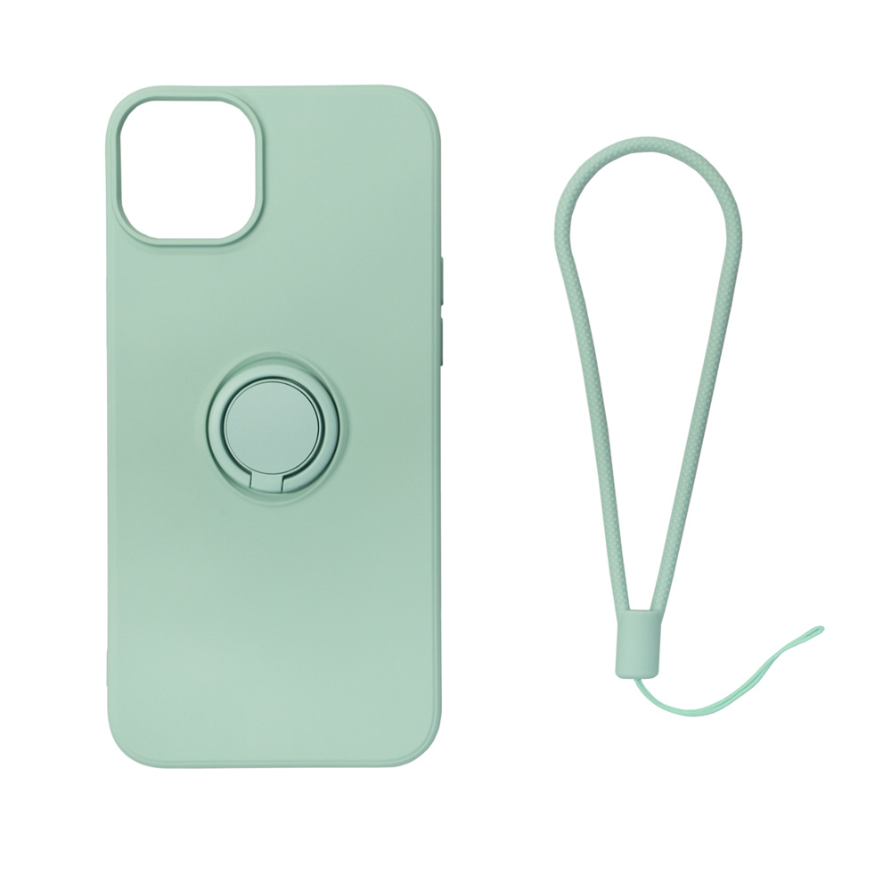 RM iPhone14用シリコンケース(リング付・ミントグリーン)