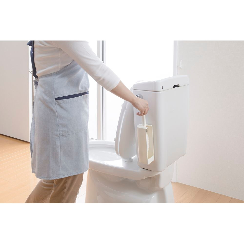 ・吸盤付でトイレタンク等の平らな面に取り付ける事ができます。