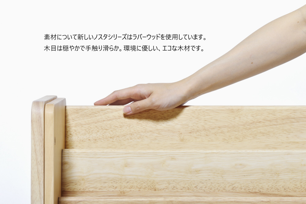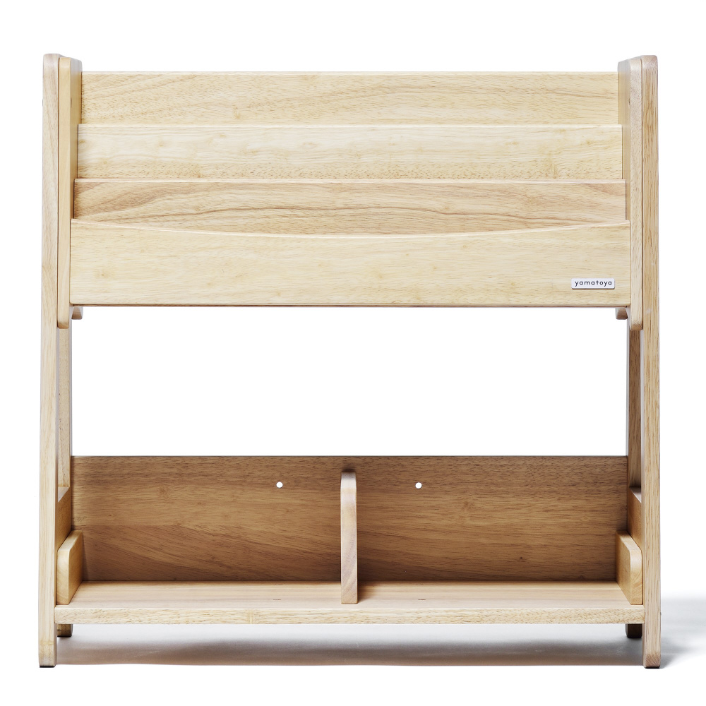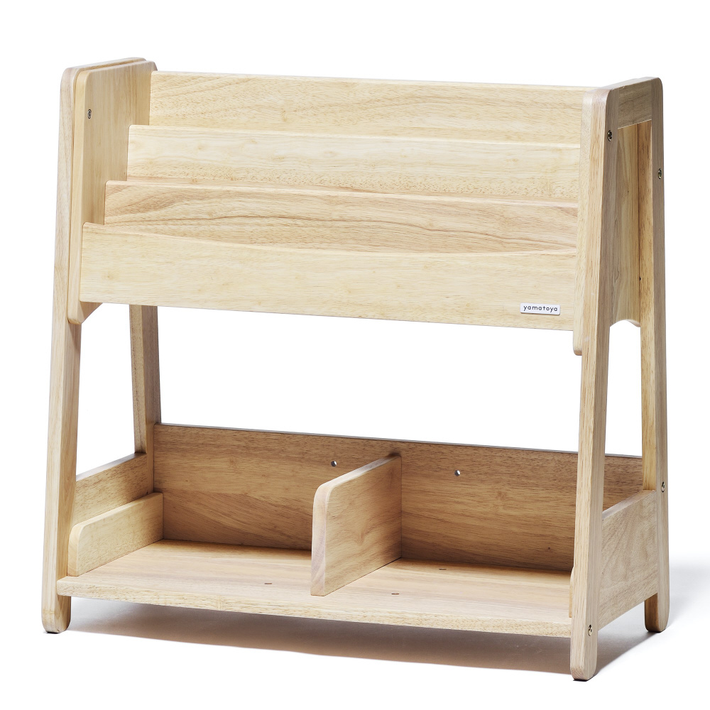 ●小さなお子さまでも出し入れしやすい高さ。ブックシェルフは上段だけでも使用可能です。●上部の本棚は、本の表紙が見やすくなっています。好きな本を見えるように置いてディスプレイにも。●棚板は可動式で3箇所に変更可能。ご家庭にあわせた収納ができます。●新しいノスタシリーズで採用したラバーウッドは、かつて天然ゴムの原料として樹液採取後、廃棄されていたものです。しかし、現在は家具や建築で有効活用されているサステナブルな木材です。