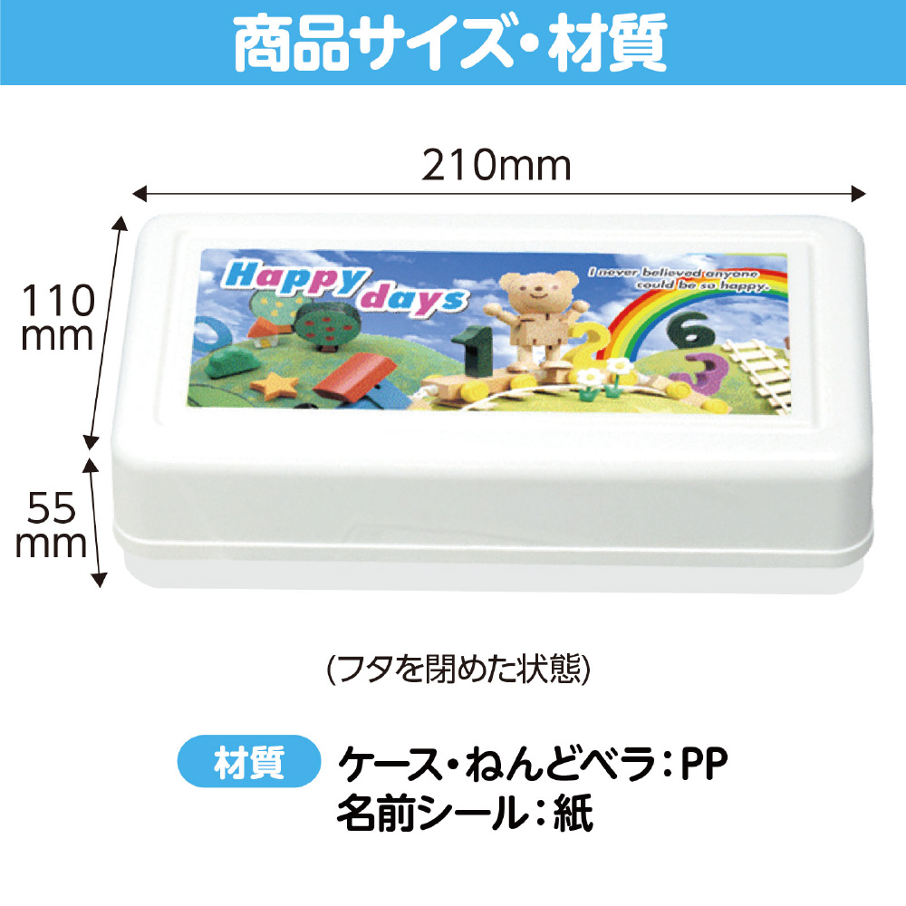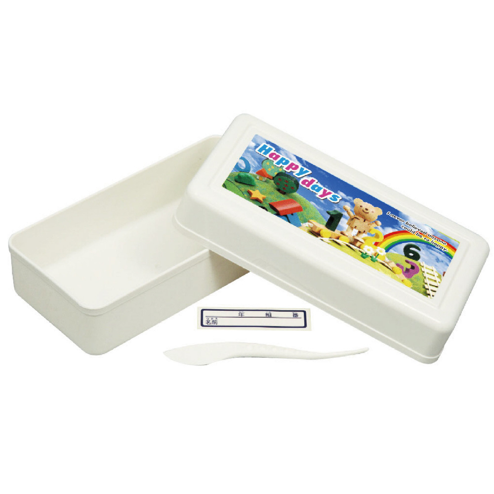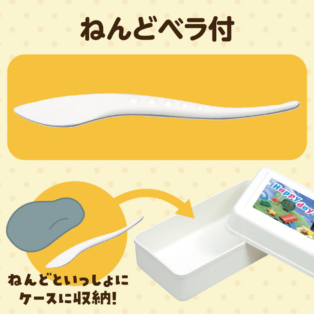 使用途中の粘土や作成途中の作品を入れておくことのできる粘土用ケースです。ねんどベラと名前シールが付属しています。工作用のパーツや道具入れとしても使うことができます。