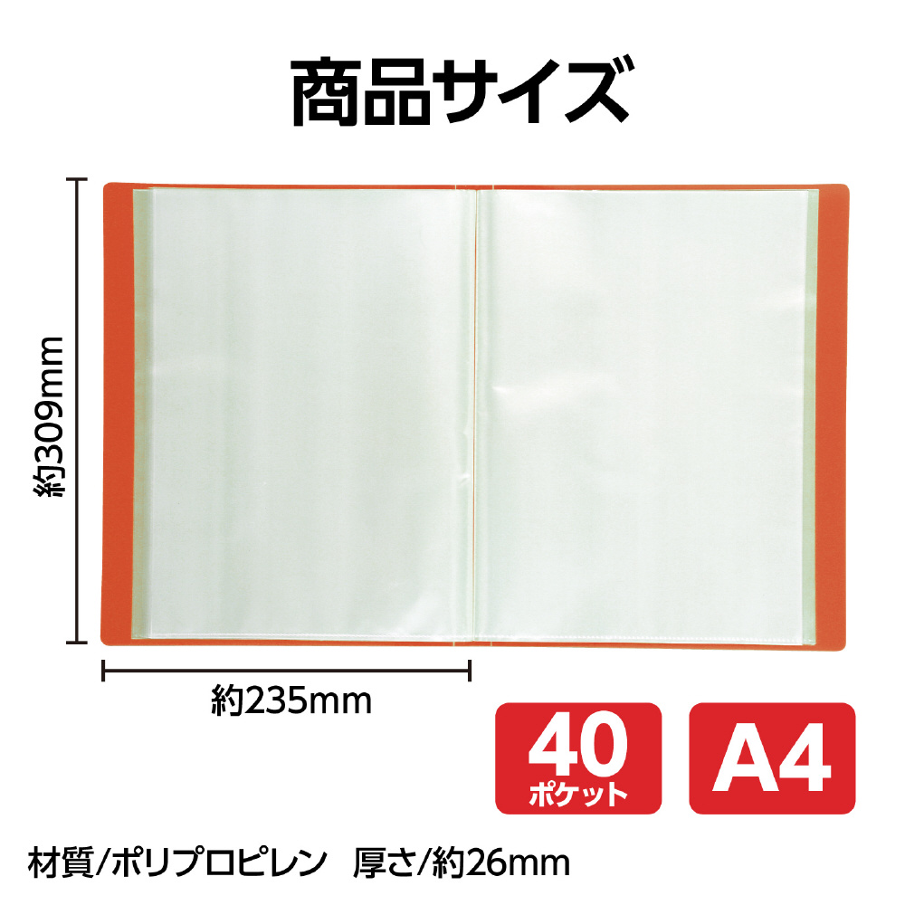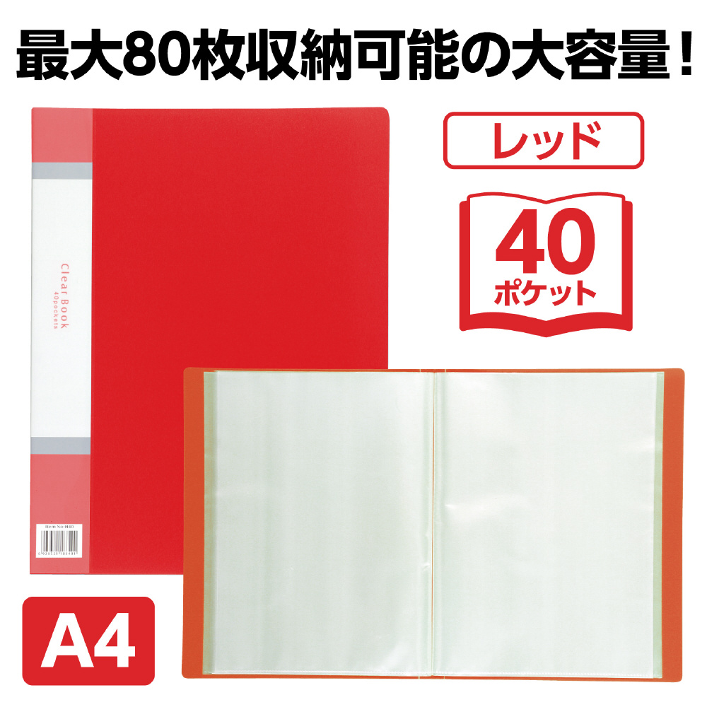 クリアブックA4 縦入れ 40ポケット レッド 5607