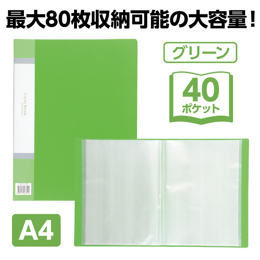 クリアブックA4 縦入れ 40ポケット グリーン 5608