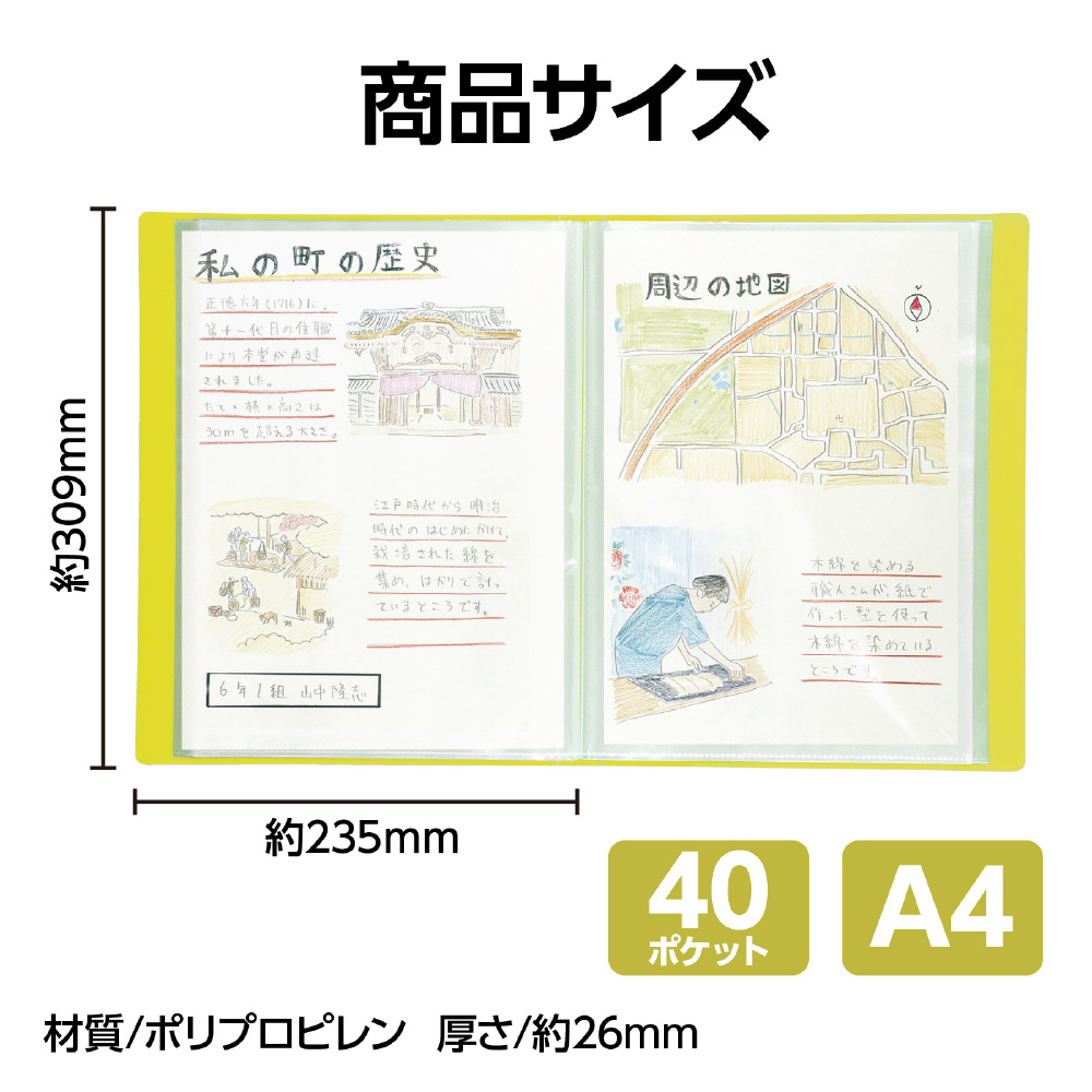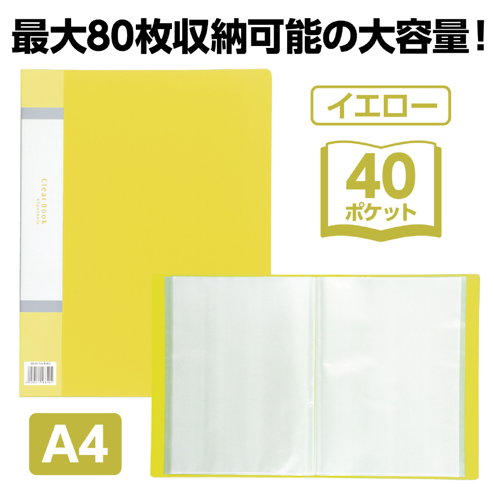 クリアブックA4 縦入れ 40ポケット イエロー 5609