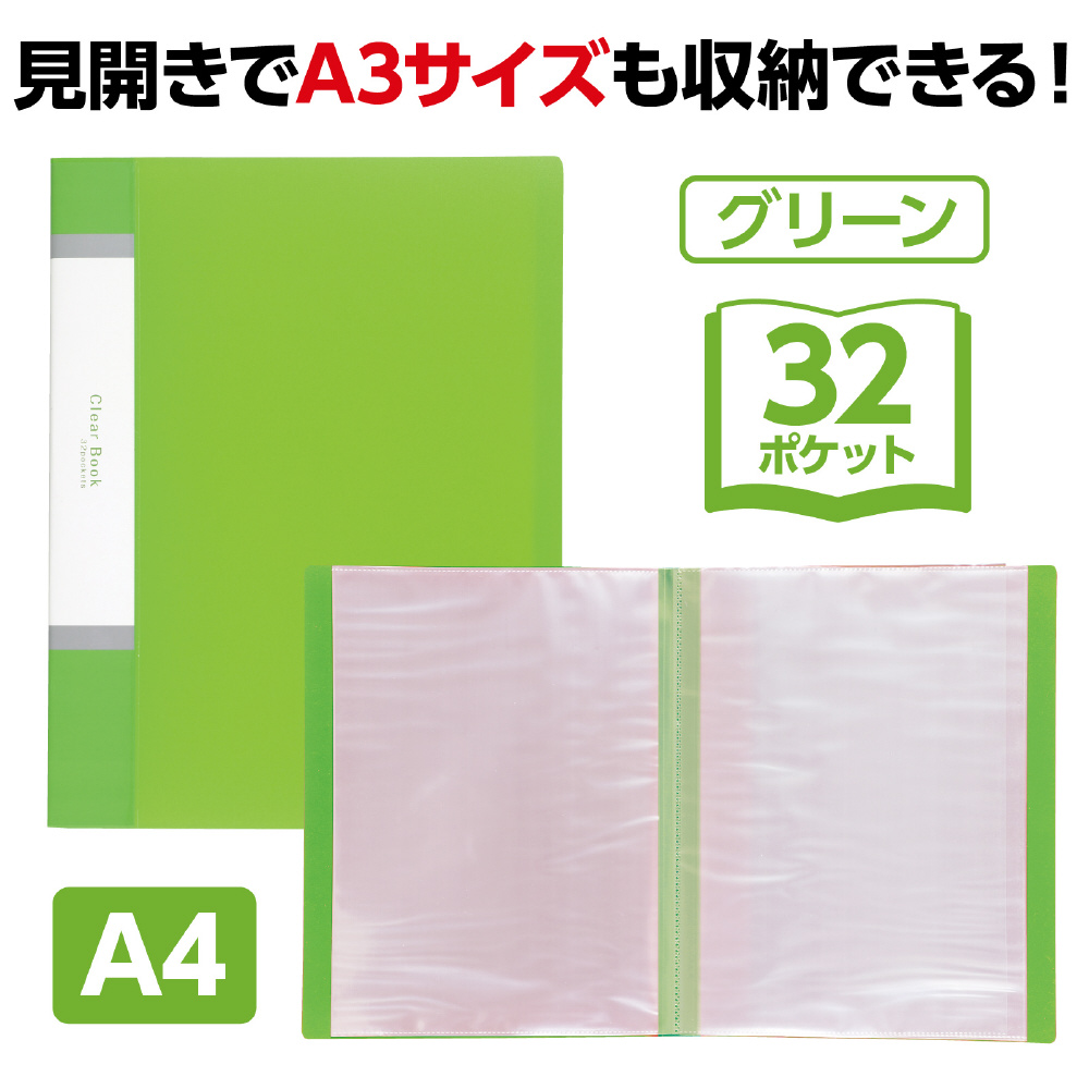 クリアブックA4 横入れ 32ポケット グリーン 5612