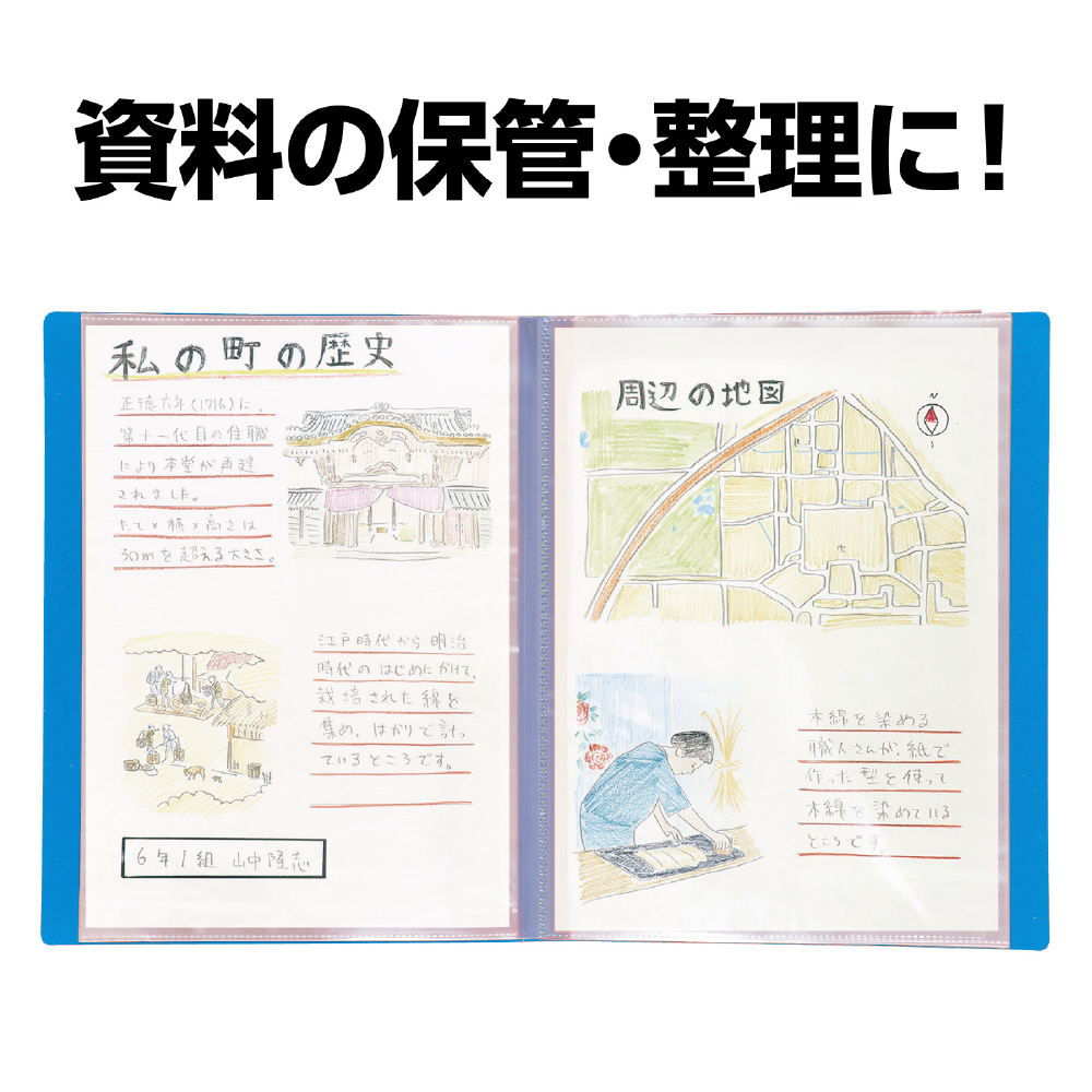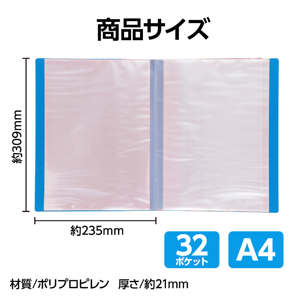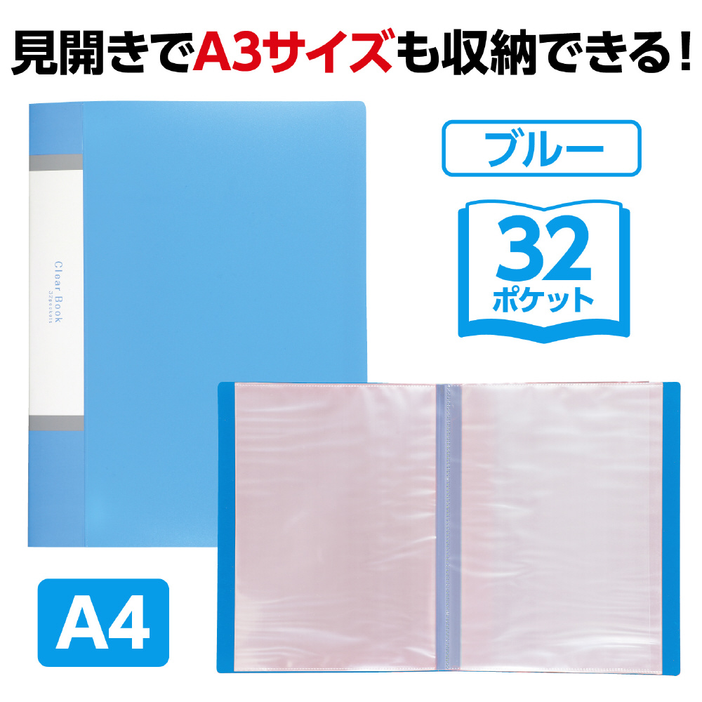 クリアブックA4 横入れ 32ポケット ブルー 5614