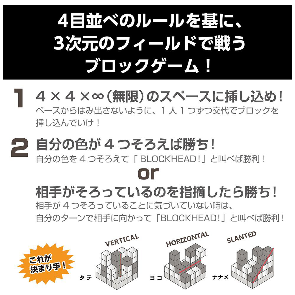 四目並べのルールを基に、3次元のフィールドで戦う大人のブロックゲームです。