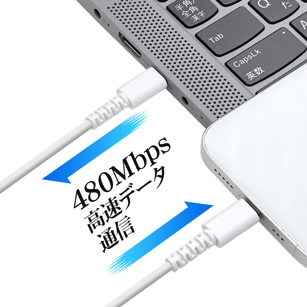 柔らかケーブル Type-C to Lightning PD対応 1.5m ホワイト R15CACL3A02WH [USB Power Delivery対応]