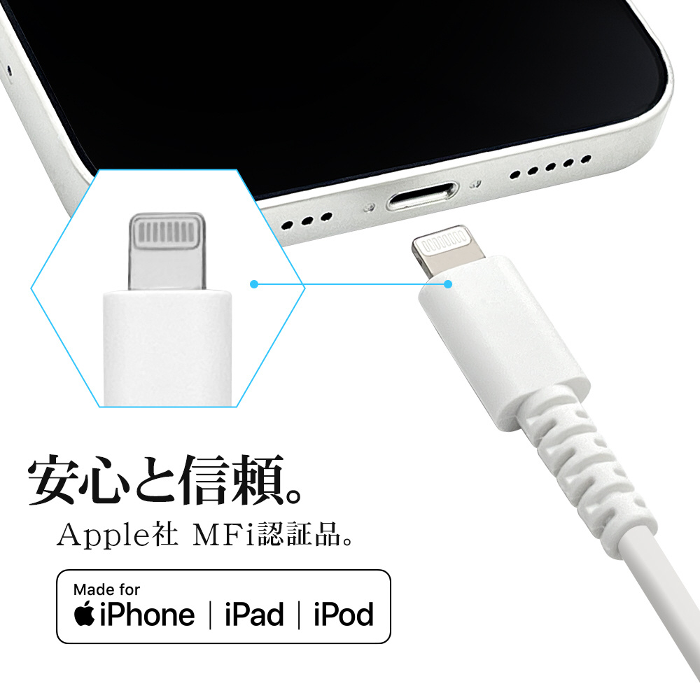 仕様2 USB PD(Power-Delivery)に対応しており、安心してお使いいただけるApple社 MFi認証品です。