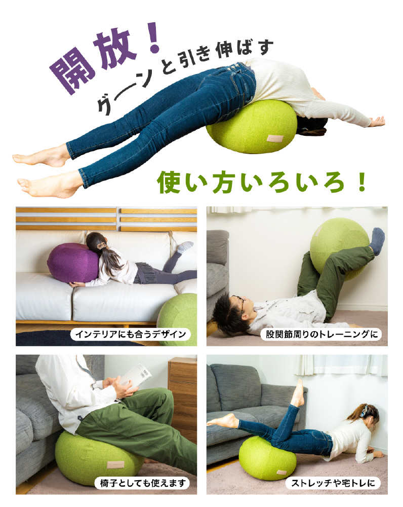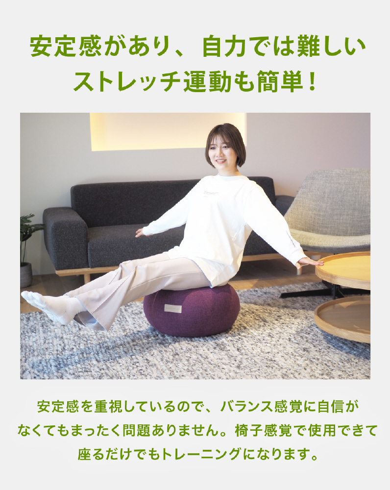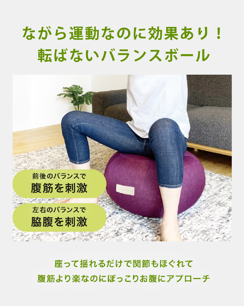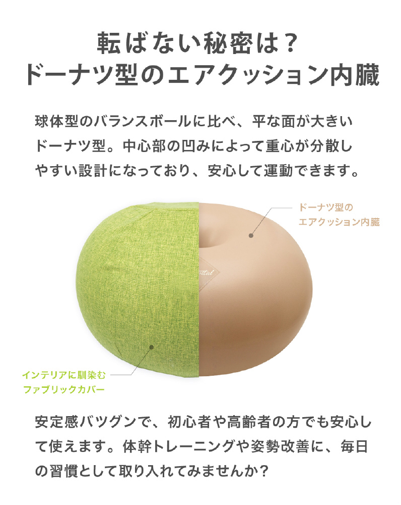 座って揺れるだけ!おうちで手軽に運動習慣。ドーナツ型のバランスボールで安定しやすい&インテリアに馴染む『エクササイズ・プフ』。