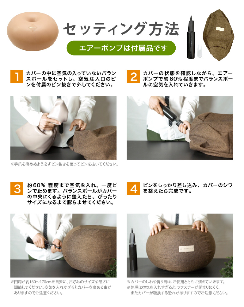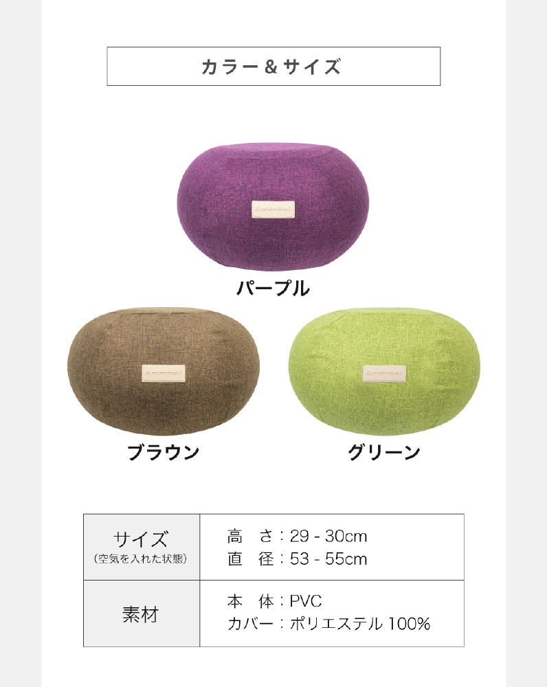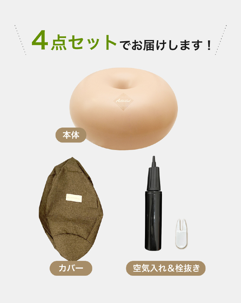 仕様1 セット内容:本体、カバー、空気栓×2、ピン抜き、エアーポンプ、運動リーフレット