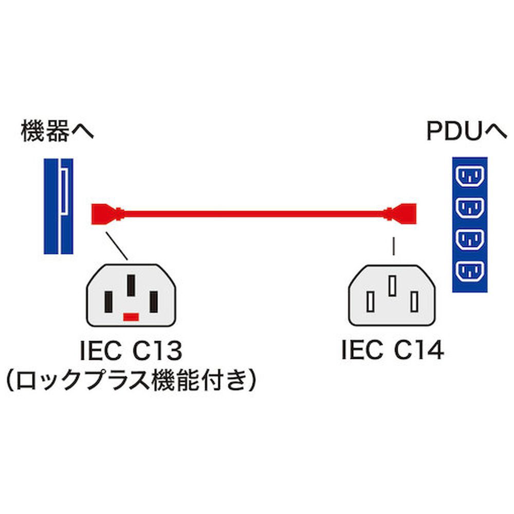 APW15-C14C13LP-10 電源ケーブル [3P(IEC C14) オス→メス 3P(IEC C13) /1m] 抜け防止ロックタイプ ブラック